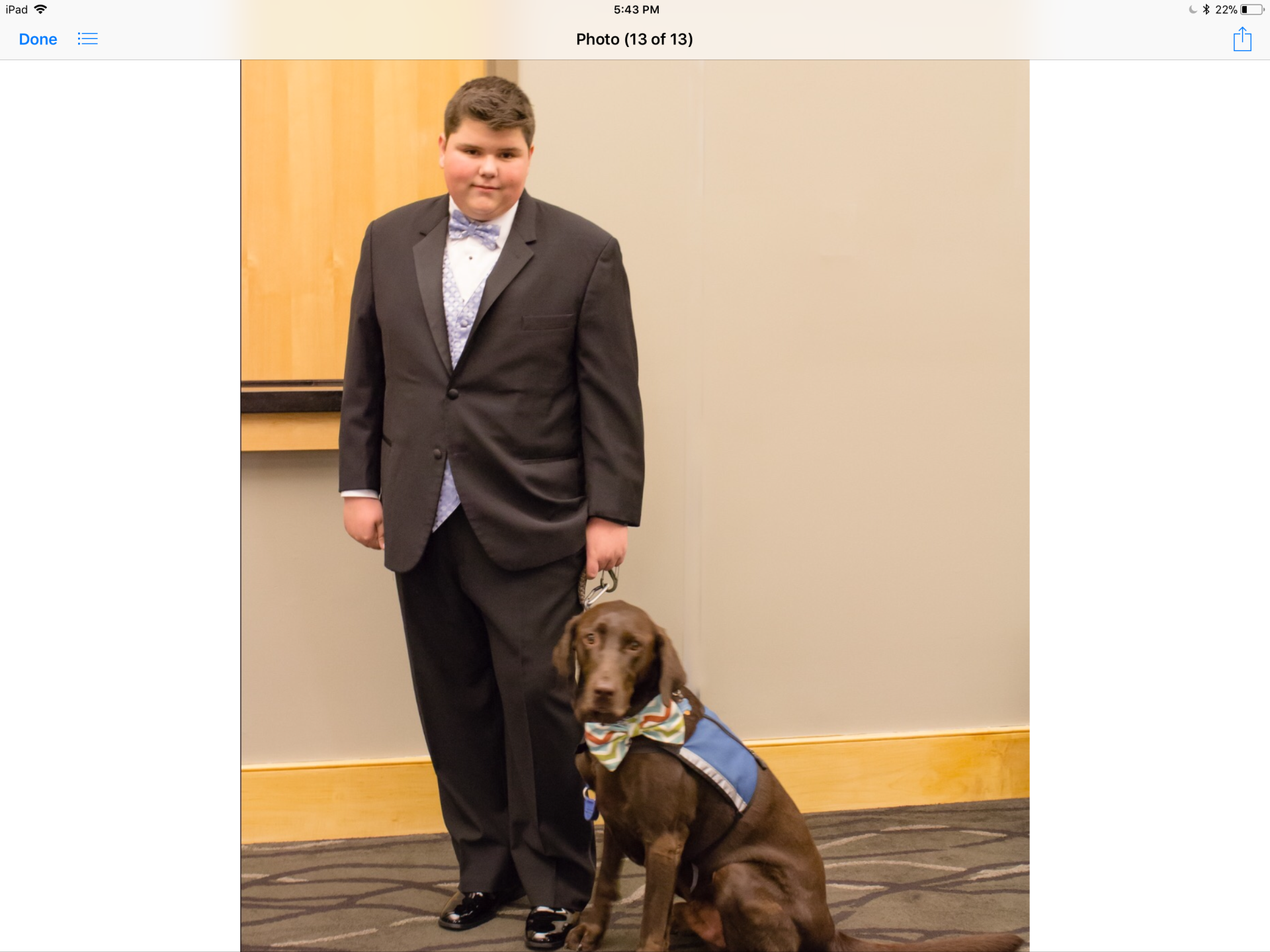 Dylan is patiently awaiting the arrival of his new dog, Theo from training. That's him sitting in the chair shown in the upper left hand photo.